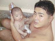 初めての湯船 今日はママが結婚式に行っちゃったので、パパとゆう君はお留守番。 哺乳瓶&粉ミルクに慣れていないゆう君は お腹がすいても いつもと違う乳首に 大反抗! 30分以上 大泣き&抵抗して観念したらしい・・・。 夜は その疲れを癒す意味で”初めての湯船”へ ラッコの様に ぷか〜っと浮いてとても気持ち良さそう☆ パパも息子との初めての風呂で すごく嬉しそうだった。いいなぁ〜〜っ 風呂上りは、いつもよりマッタリ顔で 寝つきも良かった。 やっぱりお風呂は気持ち良いんだなぁ〜 |