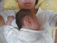 ![]() 「だいぶ首の力が強くなったよ」 |