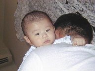 ゆう君 ゲップ中 我が家ではパパがゲップ担当。お乳をたくさん飲んだ後は パパの肩で ゲップをするはずなのだが・・・。ゆう君は 全然ゲップする気がないらしく カメラを向けたママへ カメラ目線でスマイルしてくれました。 今日は大雨で、遊びに来てくれるはずだった先輩が 新幹線に 閉じ込められちゃった・・・。ガンバレ! また今度遊びに来てね。 |