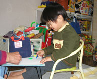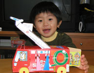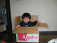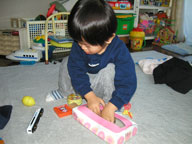![]() 空のチィシュボックスにおもちゃを 入れる悪ガキ |