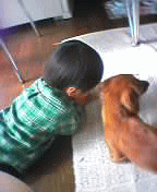 ゆう君とマリン 幼馴染の美奈子ちゃんの赤ちゃんに会いに行ってきた。 美奈子の家はイヌを飼っているから 行く前まで ゆう君がマリンを恐がるんじゃないかと思って 心配してたんだけど大丈夫だったよ〜 C=(^◇^ ; ホッ! って言うかマリンと楽しく遊んでたわ。 あんなにそばで遊ぶとは思わなかったなぁ〜 ママは犬が苦手だったんだけど ママが恐がるとゆう君も恐がると思って頑張って触れ合ったよ。 あんなに触れ合ったのは生まれてから初めてだと思う。ワタシ・・・ ゆう君はマリンにぞっこん♪ 子供って動物好きだよねぇ 赤ちゃんに対する反応は ママが赤ちゃん抱いてもやきもちやかずに見守ってるって感じだったわ。 また近いうちに ゆう君をマリンに会いに連れて行ってあげたいなぁ〜 |
