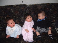 クリスマス会 Part3 もう毎日クリスマス会で 気分がワクワクして楽しい日々を送ってるわ。(爆) 今日は 美佳chanと珠緒chanとママ達の6人で 美佳ちゃんのおうちでパーティーをしたよ。 今日のメニューは モスバーガーで宅配♪ モスで予約をすると クリスマス期間中はモスサンタが運んでくれるんだよ。 しかも おまけに記念撮影付き☆ ママ達は3人のチビ達にサンタ帽をかぶせてモスサンタと記念撮影。 こんな時に限ってデジカメの調子が悪くて撮れなかったの・・・ションボリだよ〜! 美佳chanママの焼き増しに期待しちゃおうっと。(笑)宜しくねェ〜〜 美佳chanと珠緒chanはゆう君より2ヶ月お姉ちゃん。 ふたりともお座り完璧で 一人遊びもだいぶ上手にできてる様子。 ちょっと うらやましかったなぁ〜っ あっ!そうそう。ゆう君たら ウンチをブリブリ〜って大量にしちゃって 洋服まで 汚しちゃったの。たまたま着替えを持ってなくて 困ってたら美佳chanの洋服を 貸してもらっちゃった。女の子の洋服着せてみても 男顔だから ちょっと・・・ でも、帽子をかぶせたらちょっとかわいくなったんだ。 ママは目覚めちゃったかも!?(笑) もっと 女の子の洋服着せてみた〜い!! |