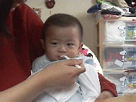 | 離乳食 : 鼻がたれてるから 中断 | |||