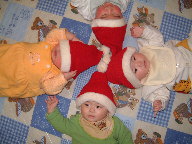 クリスマス会♪ 今日は母親学級のお友達とのクリスマス会 ケンタッキーをケータリングして、あと趣向を変えて和菓子で メリークリスマス 久しぶりのケンタッキーは美味しかったよ。何を隠そうママさんは学生時代にケンタでバイトしてて チキンは食べ放題だったんだ。すごく懐かしい味だったわ〜っ!! チビ達に赤いサンタ帽をかぶせると ますますクリスマス会っぽい雰囲気に☆ 親ばかママ達は一斉にカメラでパチパチ撮りはじめたよ。(笑) あ〜楽しかった。気がついてみると5時間も楽しんじゃったよ♪ 楽しい時間はあっという間ね。 ゆう君は今日初めて「歩行器」にのってみたよ。 結構楽しそうにガチャガチャやってた。買ってあげたいけど、我が家じゃ狭いからなぁ・・・ あきらめてね ゆう君 |