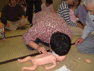 応急手当講習&5月人形 午前中はママサークル主催の「応急手当講習」にいってきたよ。 この企画は 私がOL時代からやりたかったんだぁ〜っ だって、実際その場になったら 絶対にパニクッちゃうと思うもん。少しでも勉強しておきたかったんだ。 講習では説明を一通りしてから人工呼吸&心臓マッサージを実際にやったの。 時間にしたら1時間半くらいだったんだけど、すごく勉強になったわ。 まぁ〜こんな事が実際に無い事を祈りたいが・・・ 午後は浅草橋にゆう君の五月人形を買いに行ったの。 行く前から買うのは人形がいいなぁ〜って思ってたんだ。 色々とお店を見て 結局 金太郎が兜を引いてるものに決定! お店によっては 配送センターからの出荷になるから顔が決められない所もあったんだ。 でも私達が決めたところは お顔も選べたし、大満足。そうじゃなきゃね♪ |