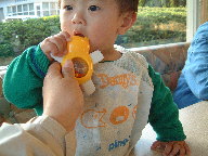 デニーズのランチ 今日は遅いランチをデニーズで食べたの。 デニーズには だいぶ前にも ゆう君と入ってて でもその時は離乳食が始まってなかった からお子様メニューにも関心無かったんだぁ〜っ 今日改めてみてみたら 乳児メニューとして ”しらず雑炊””魚の煮物”(和光堂)の 離乳食があるじゃない!それも150円でっ もちろん注文してみました!ゆう君ったら同じものを家でも食べたことあるくせにレストランで 食べると食欲がすごいんだから〜っ!バクバク食べてたヨ。┓(´_`)┏ オーノ〜 外だと気分転換になるのかしらねェ〜っっ でも、段々と外食がゆっくり出きるようになってきたから良かったぁ〜っ 泣くって事が少なくなってきたから、飽きさせなきゃOK!て感じだわ。 夜、パパのおへそを見て突然 泣き出したの。しかも大泣き・・・ なんだったんだろう? 吸いこまれそうだったのかなぁ? |
